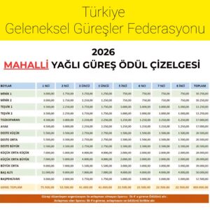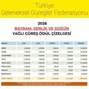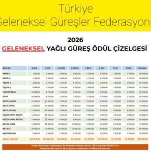 Türkiye Geleneksel Güreşler Federasyonu (TGGF) 2026 yılında yağlı güreş dalında güreşecek güreşçilerin katılacağı güreşler ile ilgili ödüller listesi aşağıdadır.